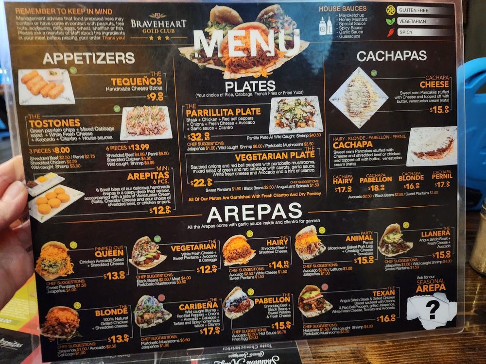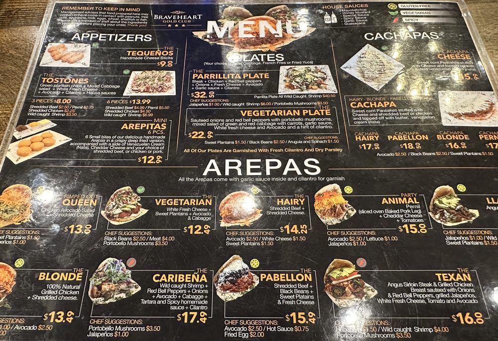 Sweet Corn Pancake + Cheese + Venezuelan Cream + Shredded White Cheese. Hairy: Shredded Beef + White Cheese Blonde: Shredded Chicken Breast+ White Cheese Pabellon: Shredded Beef + Black Beans+ Sweet Plantains + White Fresh Cheese